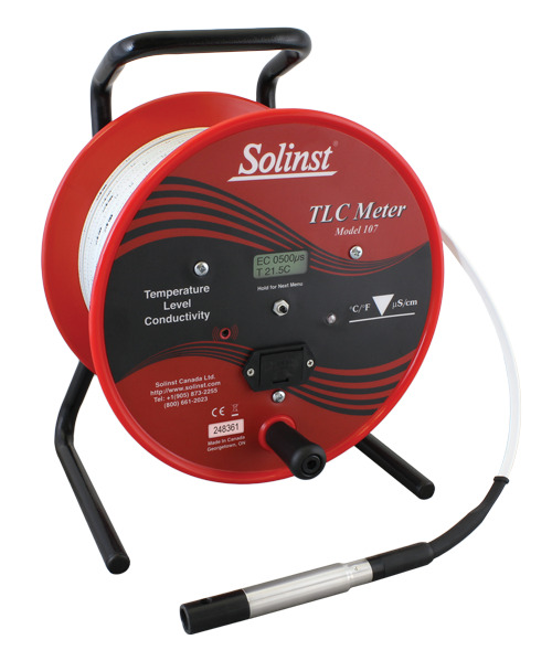 - 107 TLC. Наиболее продвинутый портативный комплекс для гидрогеологов и экологов. Помимо уровня и температуры, он измеряет удельную электропроводность воды (0–80 000 мкСм/см). Прибор поддерживает многоточечную калибровку, что позволяет выполнять точное картирование засоления, отслеживать антропогенное загрязнение и изучать стратификацию водных масс.