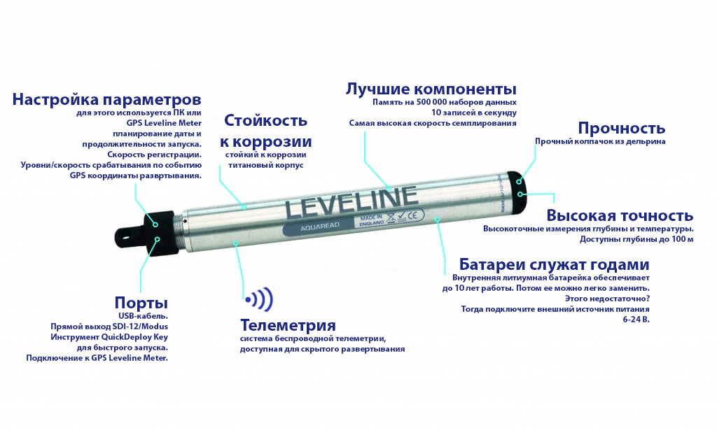 LeveLine от Aquaread доступен как с вентилируемыми (калибровочными), так и с невентилируемыми (абсолютными) кабелями, армированными кевларом, что позволяет осуществлять мониторинг в реальном времени.