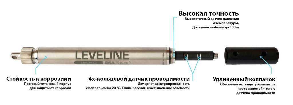В LeveLine-CTD версии Absolute используется пьезорезистивный керамический датчик давления, обеспечивающий превосходную надежность и долгосрочную стабильность, а также впечатляющую точность (0,05% полной шкалы). Доступны различные диапазоны уровней, и все они имеют температурную компенсацию по шкале от -20 до 80 градусов Цельсия. Датчик EC регистрирует измерения проводимости и солености с впечатляющим диапазоном 0-200 000 мкс / см или 0-70 PSU для солености.