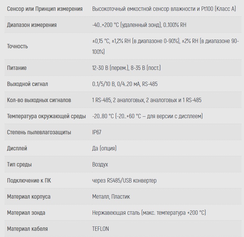 Тип датчика: ёмкостный датчик влажности & Pt 100 A-класса.